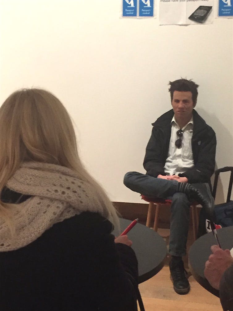 But what about up close in a real-world border control context? In new research published in the academic journal Perception, Jenkins and his team created a mock airport border control scenario during a public engagement event at the London Science Museum, which included a “traveller” wearing a hyper-realistic mask. Members of the public were asked a series of graded questions to assess whether they had detected that the individual sitting just two metres in front of them was wearing a mask.